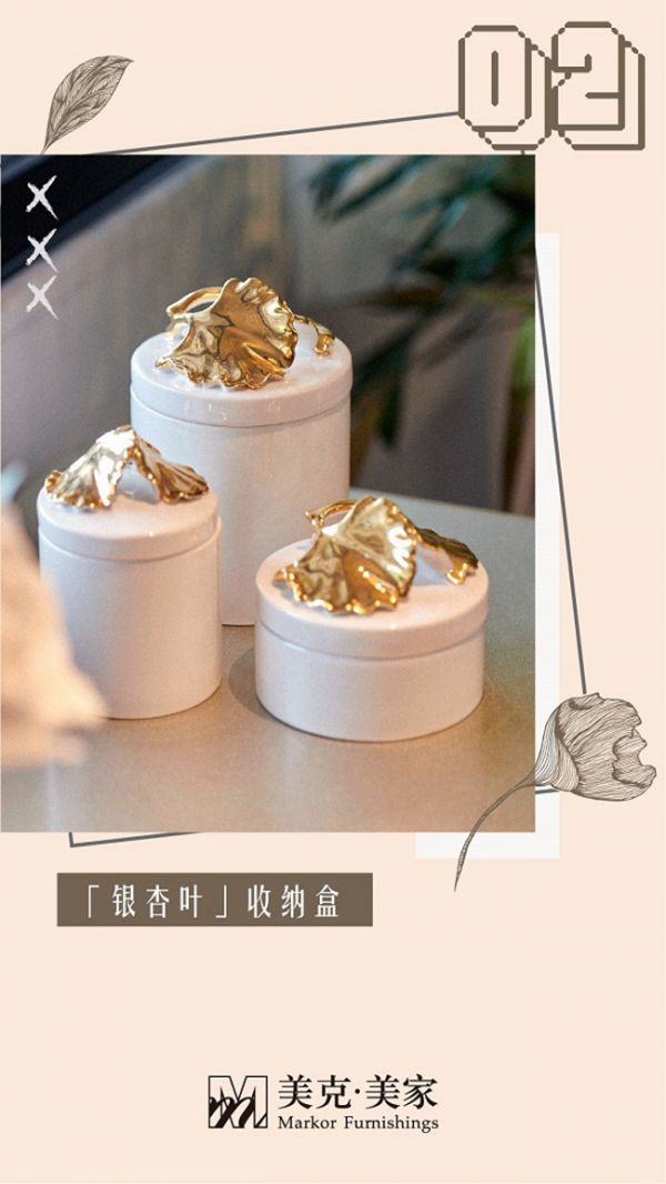 无论是何猷君的体贴、于谦的呵护还是吴京的责任,夫妻生活中的小细节能触动我们内心最深处的柔软,同样家中的宝贝好物带给我们的“小确幸”也不可或缺。小小的装饰品能让我们卸掉一天的烦恼,让自己幸福感满满。三组明星夫妻幸福小屋中的宝贝好物中包含装饰画、心花怒放兔子摆件、牡丹香氛花、银杏叶收纳盒、马克杯等等。区别于市面上同类产品,美克美家的装饰品工艺考究,类型品种丰富,造型设计多元化,艺术感十足,适配于各种内装风格的家中。美克美家的装饰品将视觉、嗅觉与实用性完美融合,打造对幸福家庭最强烈的感官体验,与品牌家具产品一样追求品质感和艺术感。置于家中,以小见大,是居家增加幸福感的“灵魂”之选。