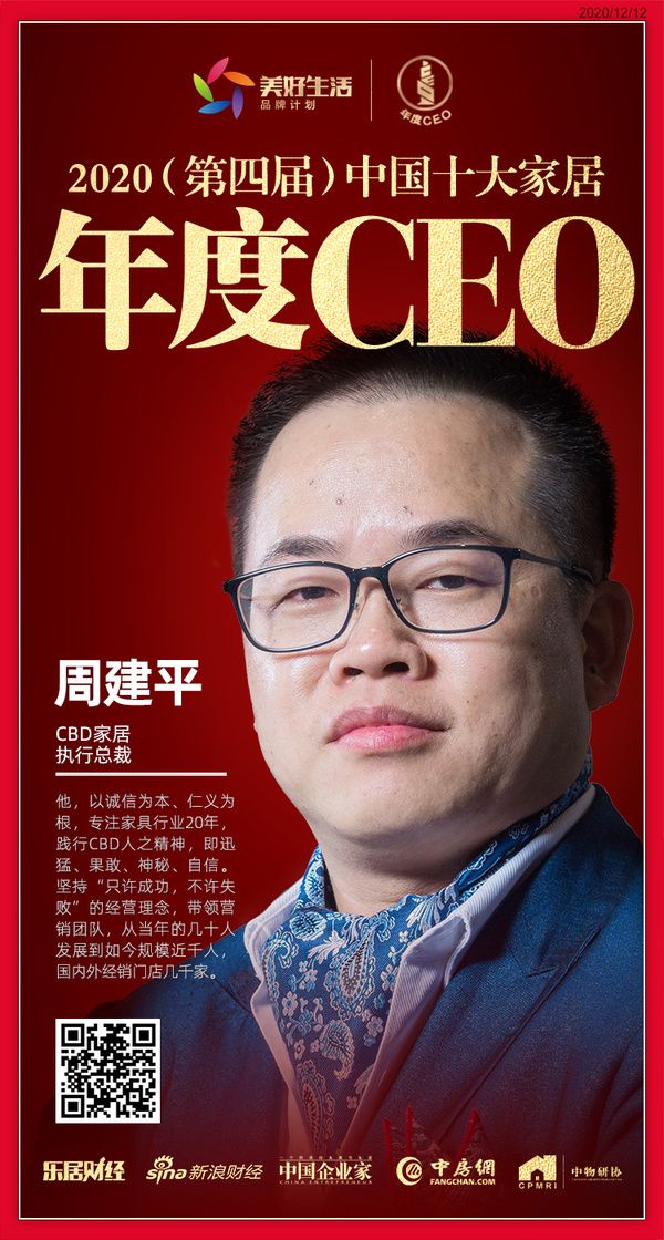 周建平在接受采访时表示,获得“年度CEO”,要感谢乐居和消费者的认可,也要感谢CBD家居自己,这说明CBD家居的努力得到了回报。因为除了“年度CEO”之外,CBD家居还夺得了2020消费者信赖十大家具品牌称号。