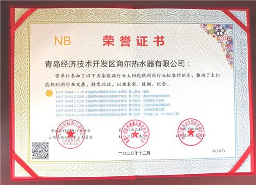 另外,参与国家及行业标准的制定,也是获得行业认可的关键因素。海尔太阳能参与制定了《2020太阳能热利用系统采购技术规范》标准中的6个部分,明确规范了太阳能热水器需要达到的各项标准,为推动行业高质量发展、为用户安全使用产品提供了保障。