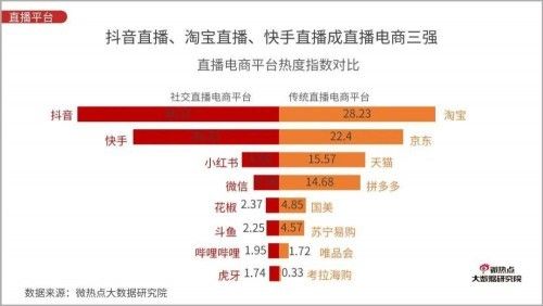 在传统电商时代,阿里京东拼多多三巨头的寡头格局已经确立,几乎无撼动可能。而后来者在当下最可能的机会是搭上直播电商的风口变道超车。就当下的局面而言,直播电商仍处在淘宝、抖音、快手三家混战的局面。根据微热点大数据研究院数据显示,截止2020年6月,抖音直播电商的热度指数超过淘宝直播,位列首位。另外据网经社、前瞻产业研究院数据显示,2018-2020年淘宝交易规模增速分别为2倍、2.5倍,快手交易规模增速分别为5倍、1.7倍,抖音直播交易增速分别为4倍、5倍。抖音作为后来者,成为发展最快的直播电商平台。