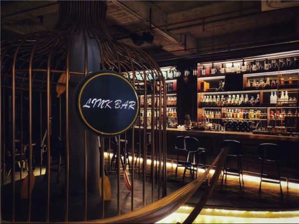 移开暗门,室内用了水泥灰的调子配合黄铜及定制家具,来营造一种差异化的视觉震撼效果。酒吧中部设计了由黄铜围合的笼子造型,代表束缚及狂野,酒柜由深色饰面定制成类似书架柜,代表自由及绅士,不同板块的依存与对立,此时无声胜有声。