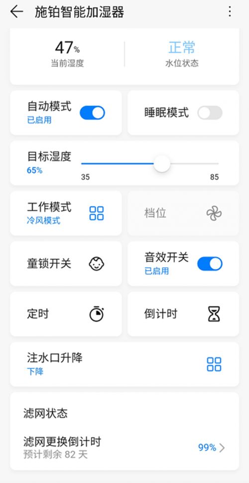 懒癌不是病,懒起来真要命。对于懒懒的我们来说,想要在冬季拥抱精致、享受生活,那就需要利用智能化黑科技产品来调节我们的生活,施铂加湿器就是这样一款科技感满满的黑科技产品,它可以通过Hilink连接,直接通过手机app一键操控,在手机界面上简单的动动手指,就可以满足我们不同的加湿需求。一键开关机、一键定时、一键切换冷雾加湿、暖风加湿两种模式,一键轻松享受冬季的缕缕湿润,这种操作,才是冬天的“慵懒过法”。