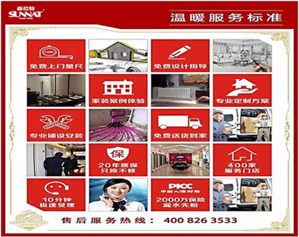森拉特,专注采暖18年,精于研发、生产及服务。在售前售后服务方面,本着对广大消费者选购暖气片需求以及相关售后服务问题的考虑,全面实现400多家门店O2O上门测量服务,极速上门检测维修服务,20年超长质保只换不修服务,漏水先行赔付无忧售后服务,PICC2000万大额投保服务等等。免千万森拉特消费者后顾之忧,成为消费者真正放心选择的品牌。