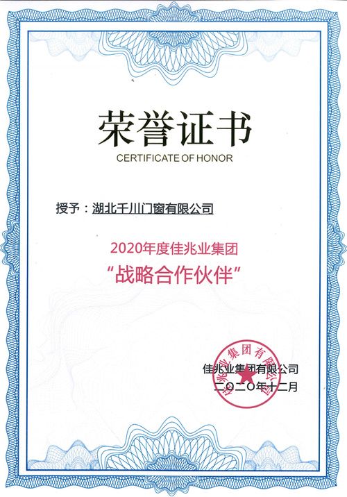 会议颁发了“2020年度2A优秀合作伙伴”、“2020年度3A优秀合作伙伴”以及“2020年度战略合作伙伴”等三项大奖,以表彰本年度为佳兆业集团做出杰出贡献的合作伙伴。千川木门凭借过硬的产品品质、优异的服务质量,荣获“2020年度佳兆业集团战略合作伙伴”荣誉称号。