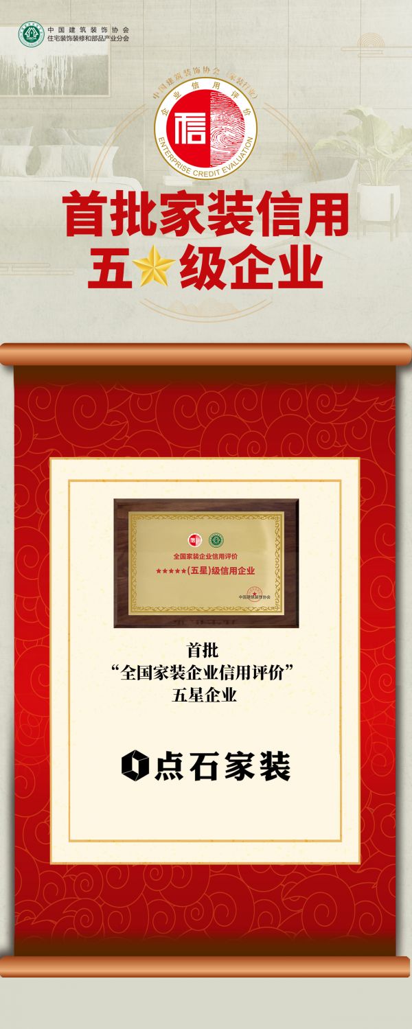 经中国建筑装饰协会住宅装饰装修分会(下称中装协住宅产业分会)历时一年审核评定,点石家装在全国家装企业中脱颖而出,近日,被评为首批“全国家装企业信用评价五星级企业”。