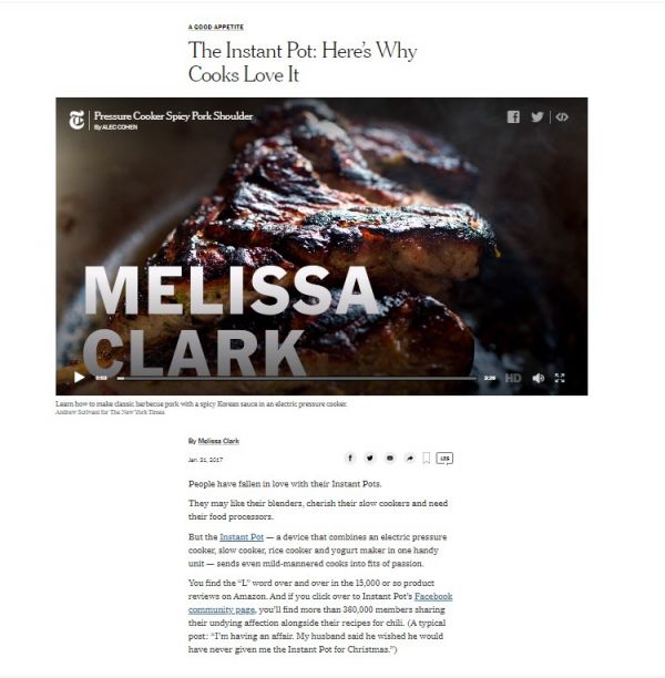 撰文《The Instant Pot:Here’s Why Cooks Love It》