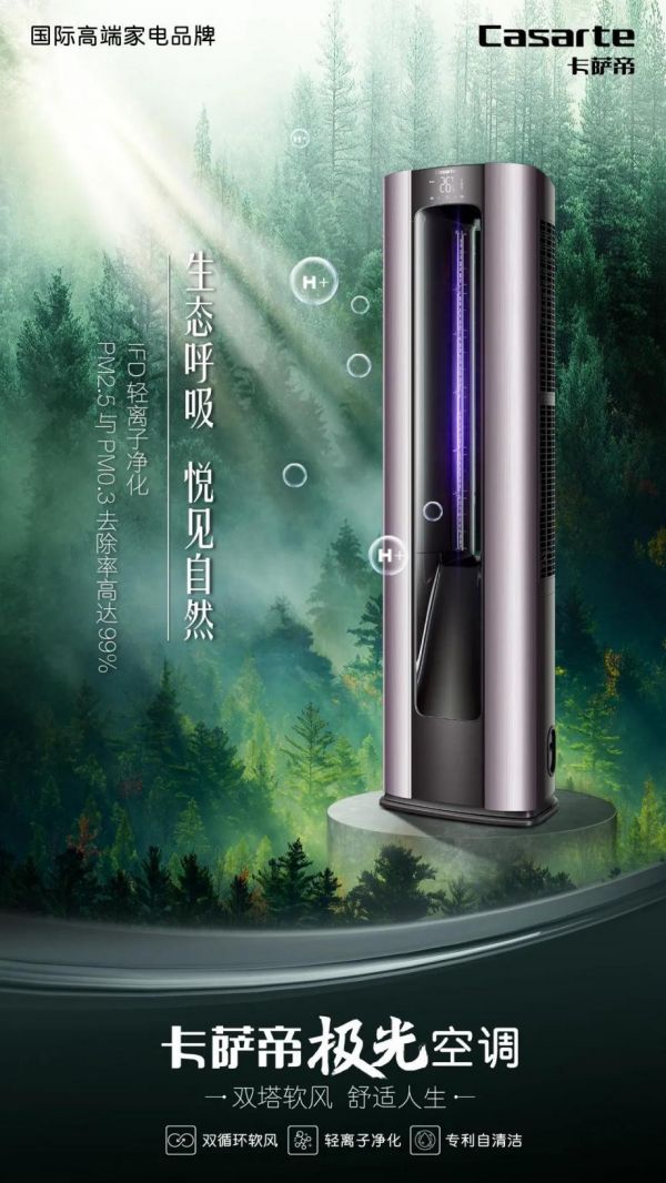 轻离子净化技术,打造纯净呼吸。空气中的污染物给人体带来的危害不可忽视,卡萨帝极光空调进一步升级了IFD净化模块,加强版负离子发生器每立方厘米可产生200万个负离子,搭建室内自然生态系统;采用纳米级碳膜,PM2.5以及PM0.3的净化率高达99%,呵护家人呼吸道健康。