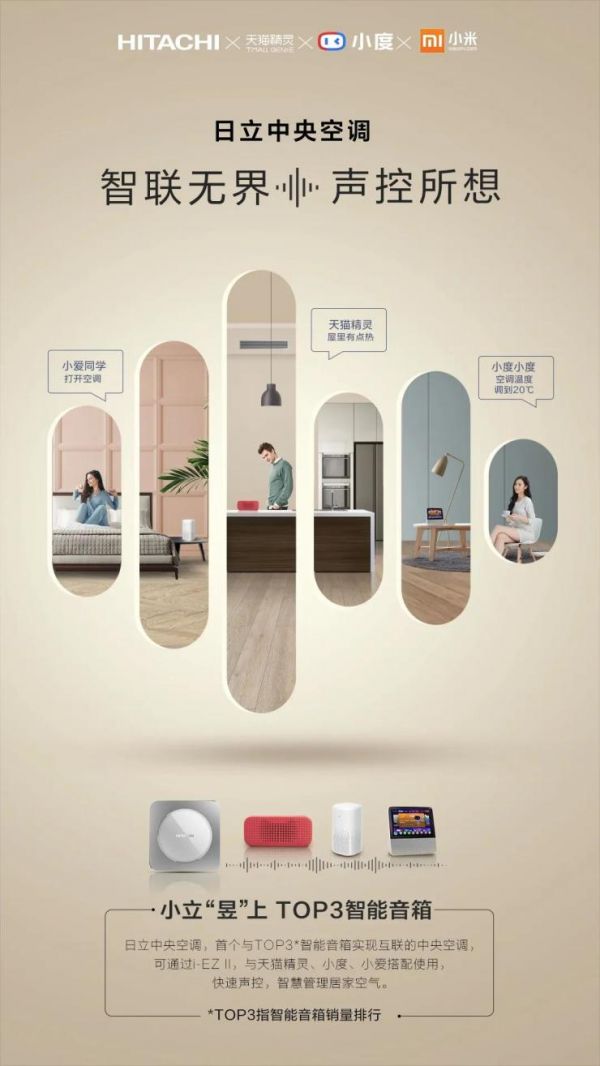 别急,这不来了吗,日立中央空调携手TOP3智能音箱——天猫精灵、小爱、小度,变身“会听话”的中央空调,这下,每台中央空调都拥有了自己的“Siri”。