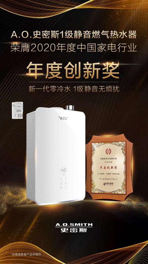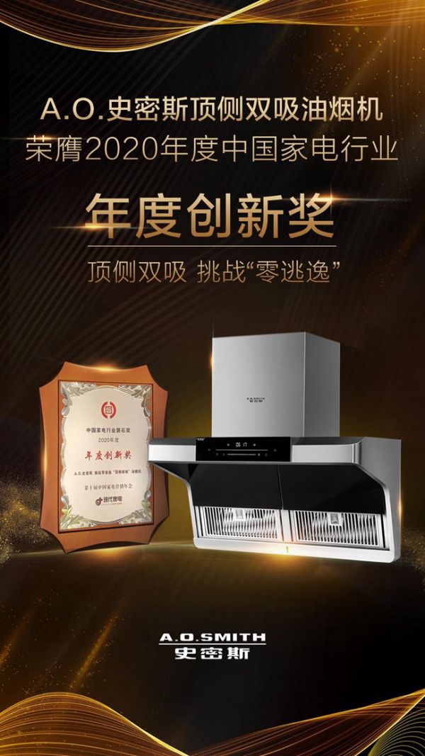 A.O.史密斯始终致力于打造品质生活,专注于攻克行业难题,给消费者创造优质的创新精品。历经潜心研发,通过持续不断的技术创新,A.O.史密斯两款创新产品:“1级静音”零冷水燃气热水器、 “顶侧双吸”挑战零逃逸油烟机,从众多参选产品中脱颖而出,最终获得 “年度创新”大奖。