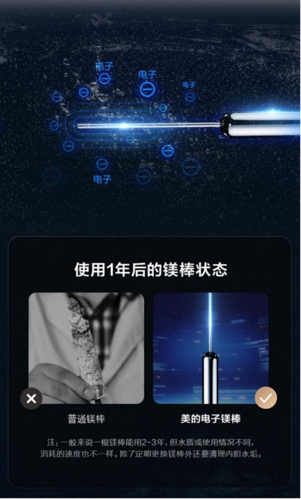 这样的场景你是不是也遇到过?洗完澡后肌肤干燥粗糙,干痒敏感,甚至还有起皮现象,发质脆弱,容易脱发......这些“亚健康”表现并不全是压力大造成的,也有可能是沐浴水质不洁净的表现。有研究表明,水中余氯和水的硬度也会影响肌肤和发质,沐浴水质不好,再贵的护肤品和护发措施都是白搭。但是市面上大部分电热水器,都是通过内胆加热棒来升温,由于内胆加热棒容易被腐蚀,长期使用会在加热棒表面堆积大量水垢,污染水质,影响加热速度,增加耗电量。为了保护沐浴水质,避免耗电过度,美的鸿蒙GF7电热水器采用高纯度电子镁棒,释放电子有效阻止镁棒消耗,耐腐蚀性高,持久免换芯,守护水质干净无污染。