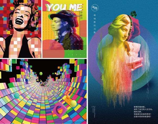 1) 波普风,以图形为主要表现形式,通过夸张的、视觉感强的、比现实生活更典型的形象来表达写实主义;