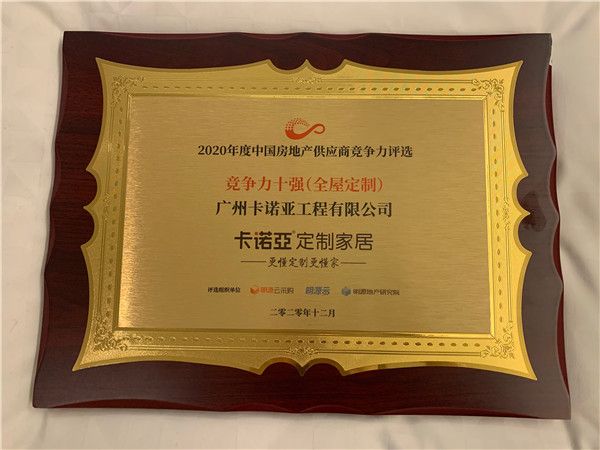 卡诺亚,作为中国全屋定制十大品牌之一,在全屋定制方面有着丰富的工程项目案例经验和技术服务优势,最终脱颖而出,摘得2020年度中国房地产供应商竞争力十强(全屋定制)称号,彰显了卡诺亚品牌在中国中大型房地产企业中形成的强大的市场竞争力和品牌影响力。
