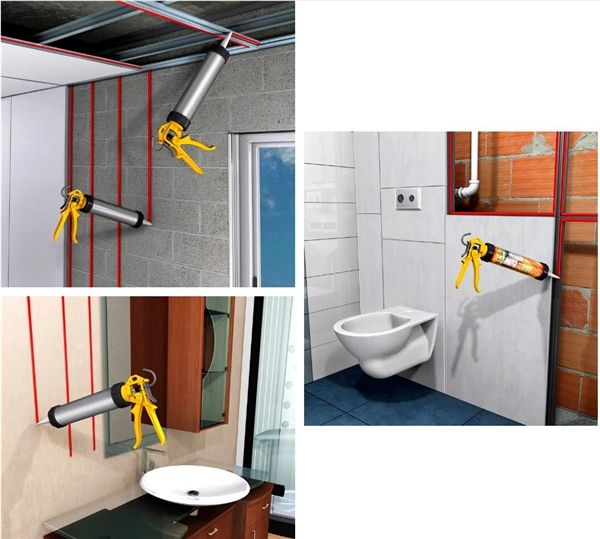 既可作为水平和垂直方向的接缝密封胶,用于混凝土和护套之间管道隔音,隔板间填缝,接缝密封,金属和木质建筑的密封和通风建筑物密封。也可作为多用途粘合剂,用于室内和室外粘结应用,例如窗台,门槛,楼梯台阶,踢脚板,基板,防撞板,覆盖板和预制部件的粘结。