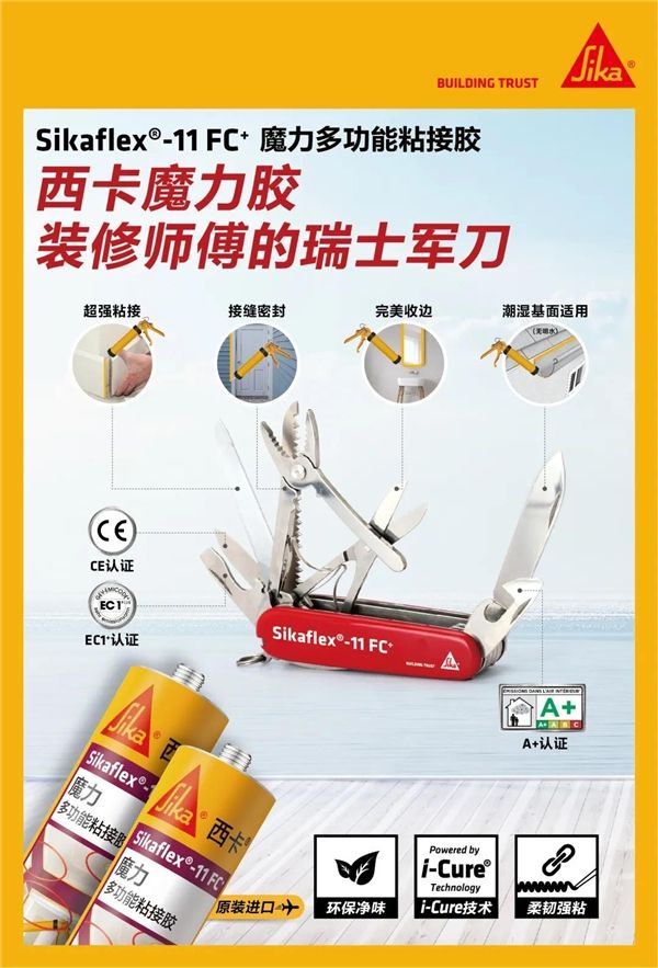 Sikaflex®-11FC+魔力多功能密封粘结胶推出市面,被许多粉丝昵称为:装修界的“瑞士军刀”。