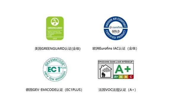 作为国内最早关注欧美室内建材VOC释放相关的环保标准及认证的企业之一,美巢集团紧跟世界趋势,持续推进产品的迭代精进,相继通过美国UL 室内空气质量绿色卫士GREENGUARD金级、欧洲Eurofins 室内空气质量IAC金级、德国GEV低挥发物释放产品标识EMICODE EC1PLUS及法国室内空气环境VOC法规French A+级,欧美最严格的环保认证及标准,成为国内唯一 一家全线产品获得国际四大严苛环保认证最高级标准的家装品牌,真正做到了美巢环保和世界同步。