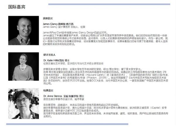 本沙龙邀请了世界各地公共领域、公共场所、公共空间和公共艺术领域的资深专家、从业者、制造者、学者和管理专家,来介绍、研讨和辩论各种问题、过程及其对城市构建的潜在影响。我们期望由此能共同寻找到个体、社区、社会、城市化、未来技术和创造力的真正含义。我们衷心希望,通过我们的沙龙研讨会系列,我们每个人在不同的信仰、不同的职业、不同的文化和不同的国家前提下建立的城市,将在人文与艺术的结合下相互连接,以便我们彼此学习各自的优势,共同探索未来城市的可能性。
