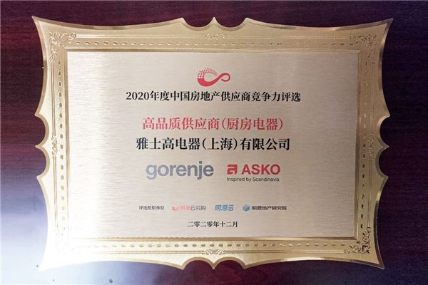 12月11日,2020中国房地产年度采购峰会在上海隆重举办,众多房企代表,家电行业大咖,供应链资深品牌齐聚一堂,共探地产行业供应链创新与变革。国际高端家电品牌gorenje在众多企业中脱颖而出,荣获"2020年度中国房地产供应商行业竞争力评选-高品质供应商"荣誉称号。此次获奖,彰显中国房地产行业对gorenje的肯定,也为gorenje与更多城市展开深度合作,满足塔尖人士对豪宅的多种需求,做好了铺垫。