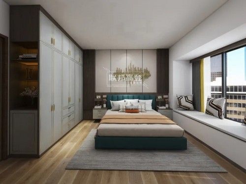 主卧延续了卡斯轻奢全屋定制的设计元素,衣柜侧边考虑到进门后的置物习惯,通过开放层格打造置物装饰区。层板内设灯带照明,即便进深可观也能轻松定位个人物品。开阔的飘窗台消解了顶天立地衣柜的压抑,同时也让整体观感更显通透。床头背景墙合理布置装饰物点缀,在满足基础的起居需求后,为整个睡眠空间营造静谧舒心的氛围。