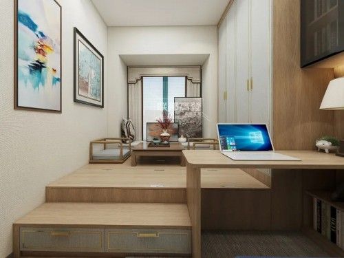 考虑到在有限的空间中,要从方方面面满足全家人的多功能需求,联邦高登卡斯轻奢全屋定制榻榻米地台设计可以说是最佳的选择。榻榻米地台连接顶天立地书桌柜,开放收纳区物品摆放随手可得,这个独立工作空间足以让人静心投入。设置阶梯式地台打造高度差,不仅能够充分利用地面空间做储物布局,更能在视觉上形成功能分区。