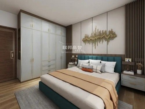 为了解决一些次卧空间狭小的问题,联邦高登卡斯轻奢全屋定制在完成卧室的衣柜+床铺的传统功能布局以外,增加了一些灵动感。以浅卡其布卡斯系列搭配原木色柜体,轻柔的浅色调为空间带来温馨气息,百搭又大气。衣柜靠床头处做镂空设计,与床头背板高度一致,贴合床头柜给睡前零碎物品一个整洁安放的好去处。