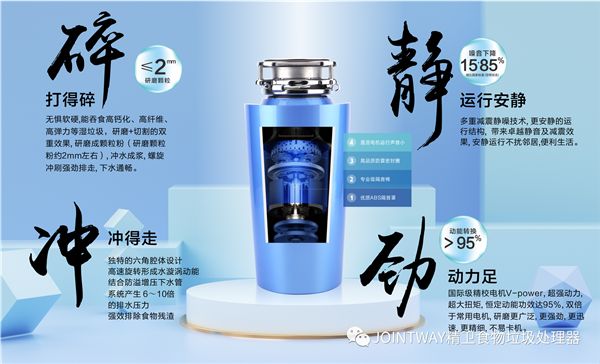 一款好的厨房垃圾处理器产品,不仅要有过硬的产品质量(不堵不卡不返水噪音小等),更要符合人们使用需求和体验。JWL5800是精卫厨房垃圾处理器洞悉消费者的痛点,历经多年技术创新与沉淀的又一力作,产品以人性化为本,带来了安全和节能性能的细致呵护,自主研发的双仓精细研磨系统,精湛研磨,无惧软硬,能处理高钙化、高纤维,高弹力等湿垃圾,双层研磨+切割的多重效果,研磨成细腻粉状(研磨颗粒物细度小于2mm左右),冲水成浆,强劲排走,下水通畅,成为行业内厨房垃圾处理器的品质产品,让消费者体验满意并乐于口碑传播的产品。