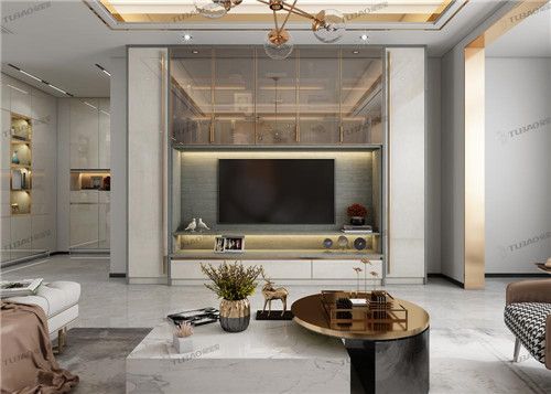现代风格是当下主流的装修风格,当把轻奢风的设计元素融入到现代大方的客厅里,带来的就是一种优雅端庄而又舒适的华丽。轻奢型的客厅更具细节感,目前深受现代都市小资所喜爱。