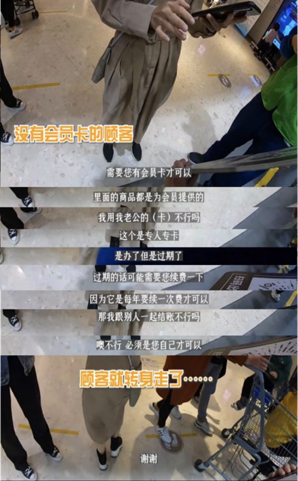 会员张女士说,自己已经在山姆续了多年会员,非常熟悉山姆的风格和商品。与其他大宗超市不同的是,山姆会员商店一直要求办理会员之后才可以进入购物。“进去过的都知道是会员制,只有会员可以入场和结账。这本身就是山姆的规则。”