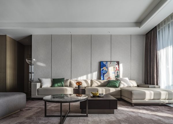 在这个项目中,业主十分喜爱石材与木材天然感受。所以,如何凸显材质特征表达生活的品味, 又如何将现代的家具氛围与业主喜欢的极具格调的艺术品融为一体成为此次设计的重点。
