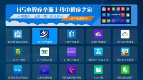虹魔方更是积极投入普惠教育的建设,方便用户体验,推出了教育类内容小程序。对每个省的课程进行重新编排,在进入省级频道之后,还包括许多空中课堂节目,小程序的出现让电视解除了硬件上的限制,不需要用户下载安装,直接打开就能通过遥控器进行使用。