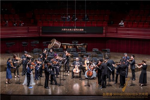 吕思清老师还与各位大师们共同携手全国首个思清少儿弦乐团、第三届“福田杯”全国青少年弦乐精英赛最终获奖的优秀选手们登台演奏。榜样力量,激励追梦前行,一曲曲婉转旋律颂两代人的艺术人生,致敬艺术传承。