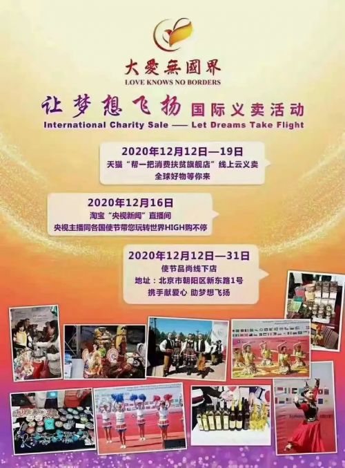 2020年12月12日上午,“大爱无国界——让梦想飞扬”国际义卖活动开幕式在北京举行。