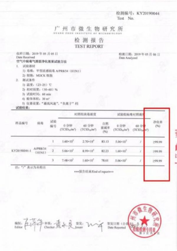 IAM空气净化器经国家权威机构检测,能够净化甲型流感病毒(H1N1)、白色葡萄球菌、金色葡萄球菌、大肠杆菌等多种常见细菌病毒,净化率达高达99.99%。IAM部分带有光触媒的机型,如旗舰机KJ1500F、以及旗下M系列空净,由紫外光能量激发光催化抗菌金属的活性,产生羟基和活氧离子,破坏病毒细胞,从而消灭病毒。另外,UV杀菌、负离子功能都能一定程度上阻止新型冠状病毒通过气溶胶传播。