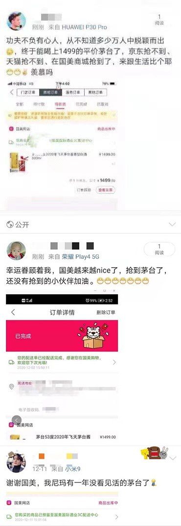 看了之后竟然有点心疼这位“敬业”的黄牛,还是想奉劝黄牛们不要白费劲了,电商平台的技术团队也不是“干饭人”,只有10%的抢购概率,还不如一个岁月静好的真茅粉抢到的概率高。在层层技术堡垒下,多数抢购成功的还是那些使用正常渠道的茅粉,就有不少茅粉在微博晒单在国美抢购成功的喜悦。