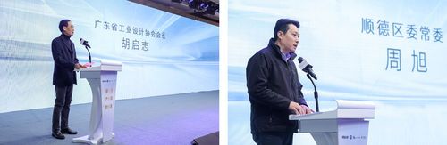 在全场来宾的见证下,广东省工业设计协会会长胡启志、顺德区委常委周旭、大良街道党工委书记霍茂昌、佛山市工业设计学会副理事长何琼、广东东方麦田工业设计股份有限公司总经理刘诗锋、广东顺德麦享商业运营管理有限公司总经理井春英共同启动开园仪式,广东大门设计创新产业园正式开园。广东省工业设计协会会长胡启志、顺德区委常委周旭,在开园仪式上发表讲话。