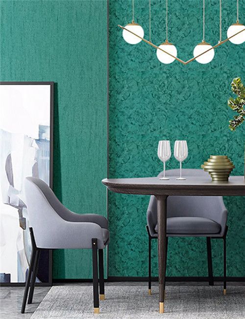 另一款深绿不规则花纹的墙布,颜色似墨绿,却又比墨绿浅,不那么深沉,容易让人眼前一亮。这一款墙布选用高精密提花布料,花纹细密却不繁杂,远远看去又像是开了大片的牡丹花,分外精美,装饰在客厅,既清新又不失雅致。
