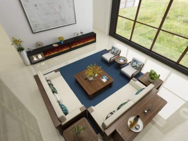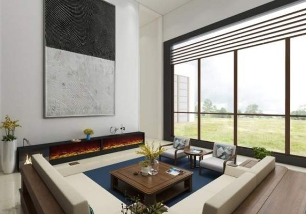 处所通透,方能活出豁达的人生。在整个客厅的空间布置上,实木、玻璃、软装等多种材质完美融合。立面墙的落地窗,将视线向远处无限延伸,目光定格在远方,高级留在家里。设计师在客厅软装家具的选择上,以布艺家具为主,奶白色的软布沙发置身其中,简约素雅,为客厅增添几分高级与温馨;对面的壁炉和炉火装饰,将主人的热情、优雅体现的淋漓尽致。