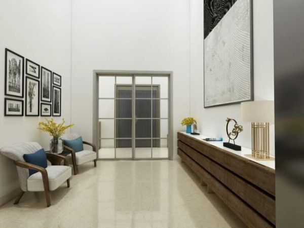 玄关处一排展示柜在节约空间的同时兼顾美观。整体风格采用白色和原木色搭配,尽情的营造淡雅、高级的生活气息。墙壁上随意的摆放着素雅的壁画,让高级的艺术感进门就扑面而来。