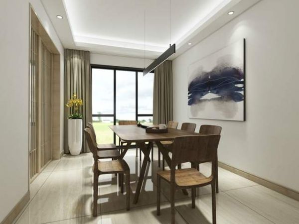 一个完美的餐厅往往能惊艳一个家。以美国黑胡桃木为原材的长方形实木餐桌肆意的占据着餐厅,天然细致的纹理,看似简单但暗藏心思的外观,诉说着餐厅的欢声笑语;稳重高端的原木色,如油似玉的触感,绽放着大自然基本的狂野。与餐桌同色系的餐椅置身其中,尽情的渲染着舒适与温柔。伴着窗外的美色,在充满设计感的餐桌上进食,品味高端惬意的生活。