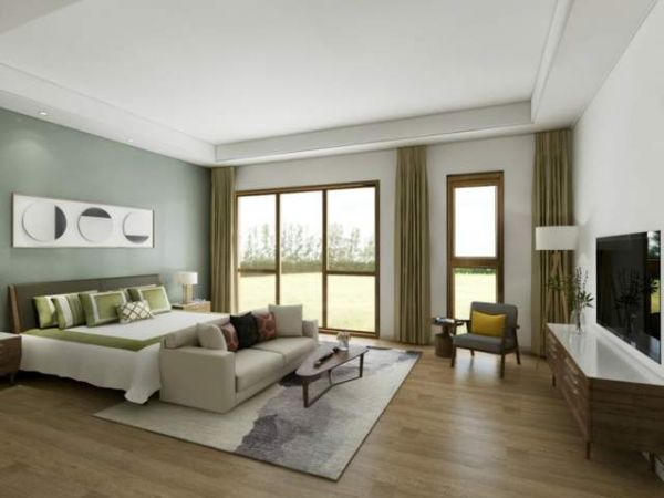主卧空间在美国黑胡桃高端木作的加持下,形成了简洁中不失高级的品味与质感。虽是实木打造,但无论是优选原材、匠心制作,亦或是出自国际知名设计大师之手,如此堪称可传承的艺术臻品却无沉闷质感,更多的是被轻巧灵敏、简约大气的设计外观所取代。主要色调以清淡的原木+白+绿为主,用和平的色彩铺设静谧的氛围,给人以惬意安稳之感,是平复心灵,进入梦乡的好去处。