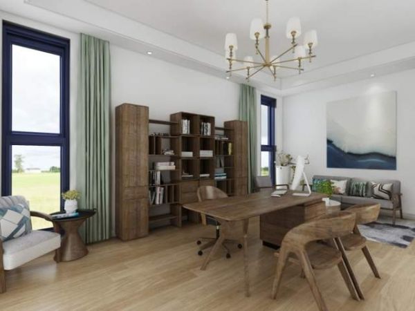 原木渲染的高级,在书房表现得更为明显。木质元素与玻璃元素置于同一空间之中,让采光更充足,视觉得以延伸。错落交织的木制书柜,营造出简约的高级,水墨画和淡黄色碎花的点缀,让沉稳中多了一抹生机。空间的整体设计充满现代气息,线条简约流畅,色彩对比明显,自然舒适。又有丰富的内涵,从而打造出质感十足的文化氛围,彰显主人的身份和品味。身处其中,带给人最惬意舒适的状态。