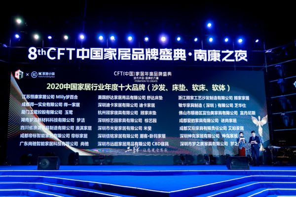 2020年12月18日,梦洁家居在第八届CFT家居品牌节“金匠奖”颁奖盛典上荣获“中国家居行业年度行业十大品牌(床垫)”