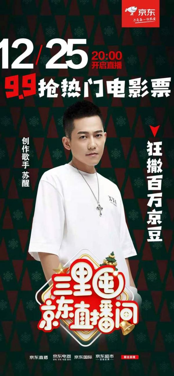 12月25日晚8点,苏醒将会现身直播间,将节日狂欢热情推至最高点。消费者仅需9.9元就可以抢到热门电影票、5斤红富士苹果。作为“京东星主播”的一员,苏醒还会为大家带来乐高、JBL、雅诗兰黛、戴森、松下等大牌爆品献上诚意优惠。