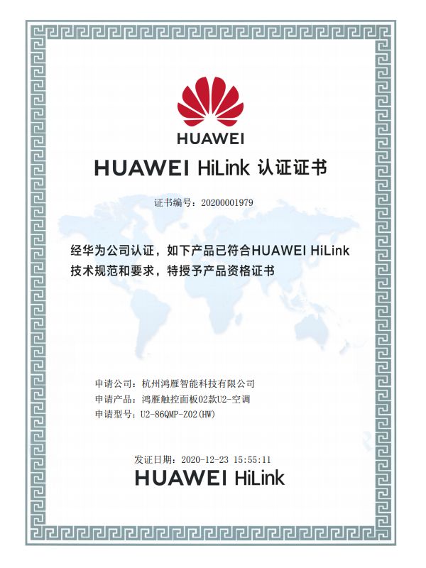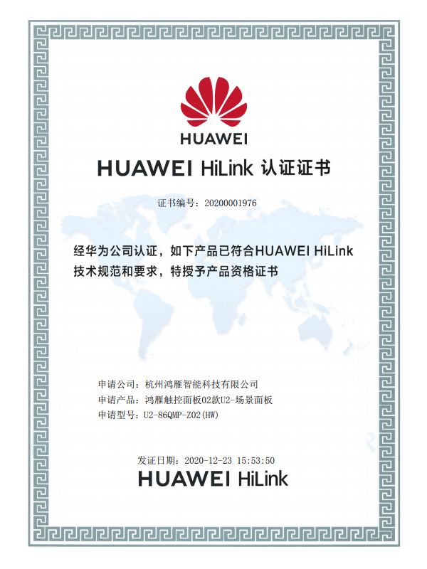 据了解,HUAWEI HiLink是华为开发的智能家居开放互联平台,主要解决不同品牌、不同厂家智能设备的互联互通问题。通过HiLink连接更多IoT生态产品,跨品牌生态产品之间可以做到互相“理解”、有效“沟通”。截至目前,HUAWEI HiLink已激活5000万生态用户,智慧生活APP装机量累计达4亿,全场景设备交互请求日均10亿次。而鸿雁智能产品获HUAWEI HiLink技术认证后,可以通过硬件接入、云接入等方式加入到生态中,成为华为全场景智慧生态的重要部分,用户可通过华为智家App、终端界面、语音方式等查看和控制鸿雁智能产品,享受更加极致的场景体验。
