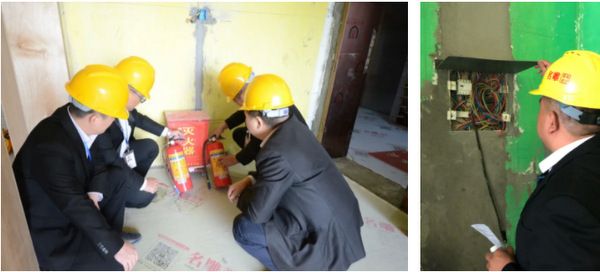 △安全文明生产PK:核查灭火器是否能正常使用,临时用电及工具是否规范,保证安全施工,杜绝安全事故。