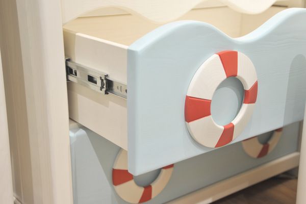 抽屉异形拉手同样采用手工磨圆处理,全方位保护孩子的使用安全。