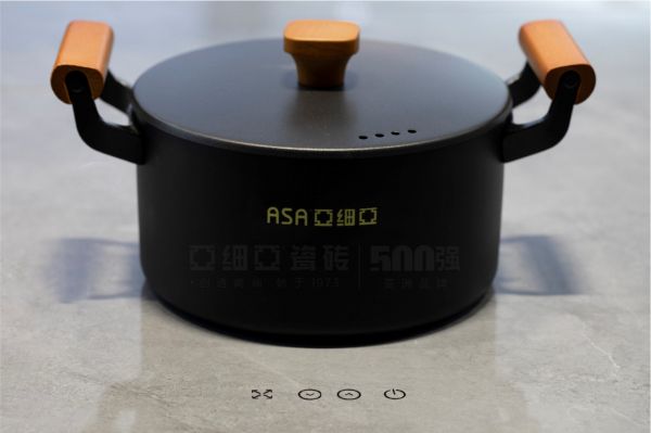 以亚细亚瓷砖的岩板应用举例,利用岩板的抗冻性能与温度传导性能,可以让桌面搭载冰镇台面功能;
