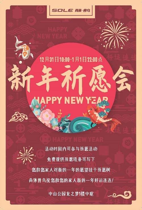 1. 活动期内,现场可免费领取一张精美祈愿纸条,可写下您和您家人对新的一年的愿望,悬挂于中央的祈愿树。