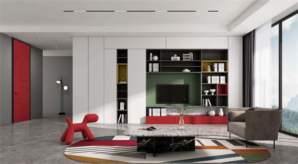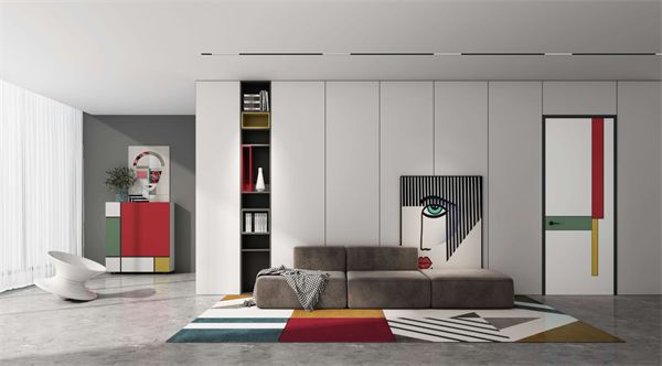 纯色干净整洁,跳色活力个性,在白色空间里采用醒目的色块和线条,让人感觉仿佛生活在画家的脑海中,最大限度发挥蒙德里安的格子迷人的特性,让最简单事物延伸出最多的生活内涵。