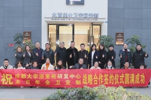 2020年12月25日,木百年与成都大学浴室柜研发中心战略合作签约仪式在青龙建材城木百年展厅隆重举行。