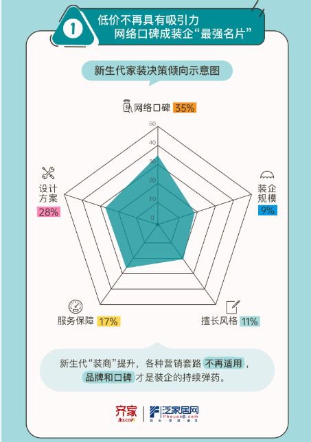 从该报告可看出,在装修过程中,年轻人并不太重视预算,而更重视家装“颜值”的高低。“设计方案”、“擅长风格”等与家装颜值直接挂钩的属性均被列入了年轻人筛选装修公司时的TOP5考量因素,而价格因素并不在内。与此对应的是,年轻人装修预算明显高于老一辈,报告显示,12万正成为新生代的装修门槛。
